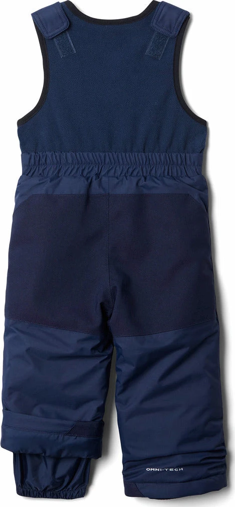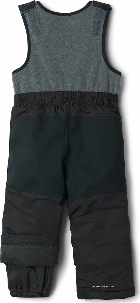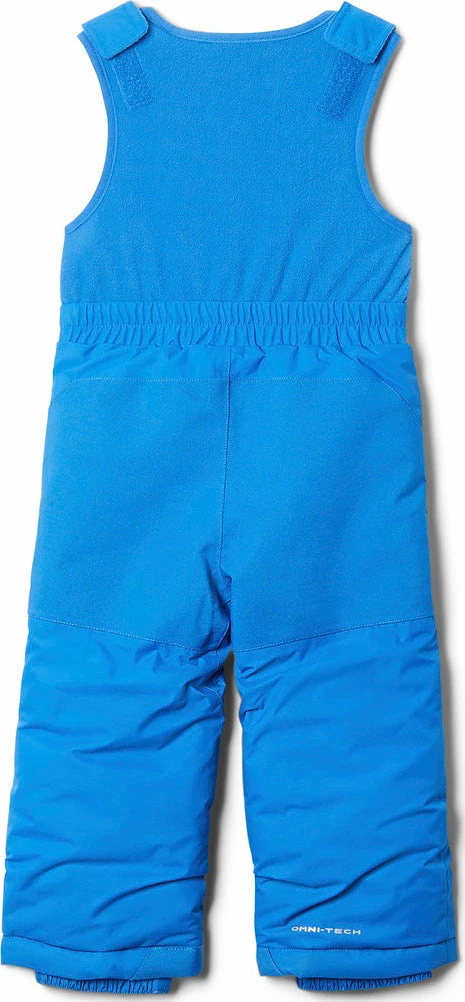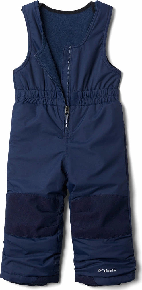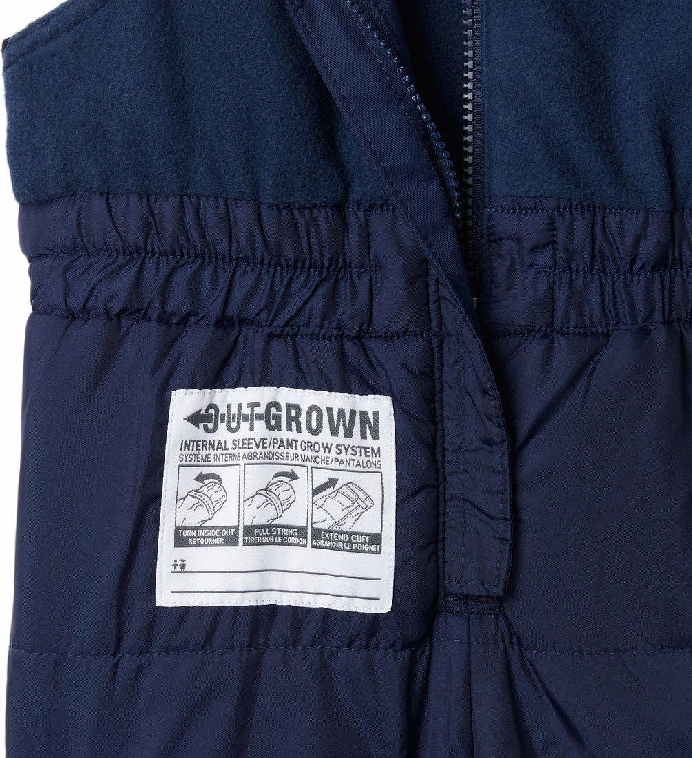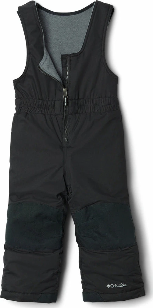 With a waterproof-breathable construction and heavyweight reinforced rear and knees, this 150g-insulated snow bib will keep them dry and toasty from the playground to the slopes and sled hill. The kidâs Buga Bib features an easy-to-put-on front-zipper construction with adjustable shoulder straps that keep snow from going down their pants. Plus, the pantâs special Outgrownâą cuffs extend to accommodate for growth over multiple seasons.