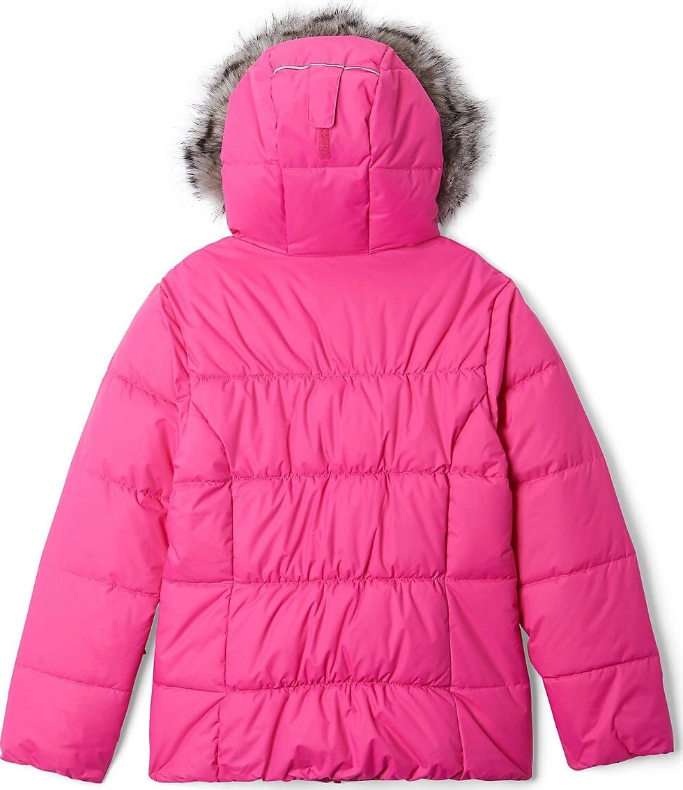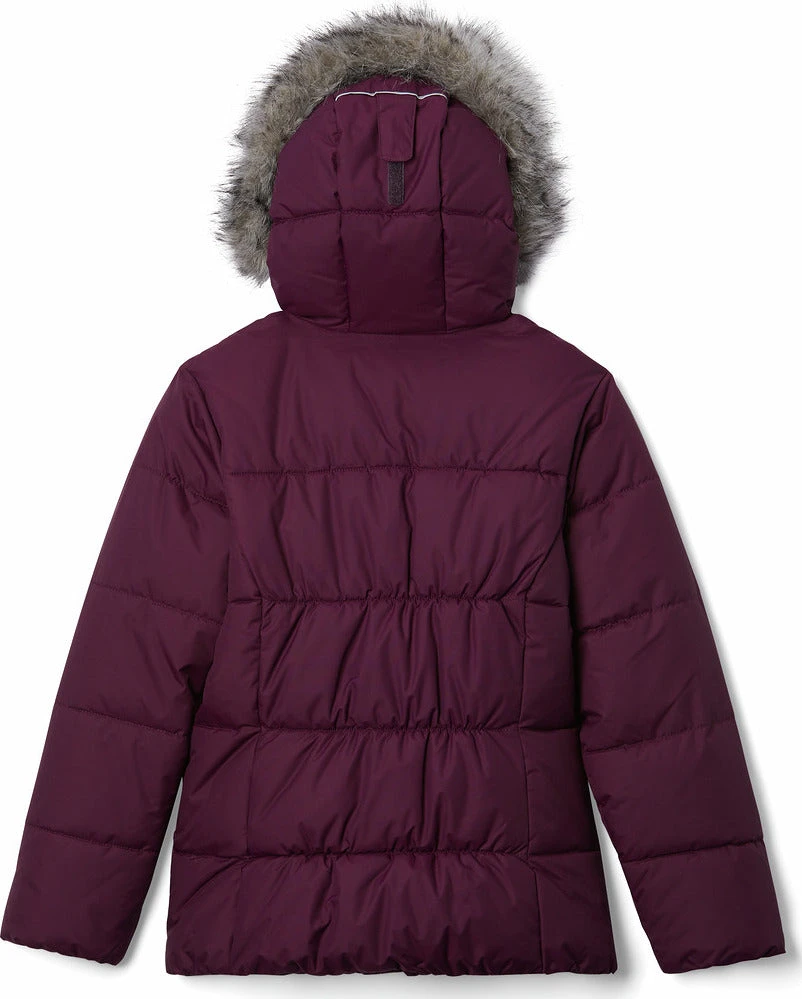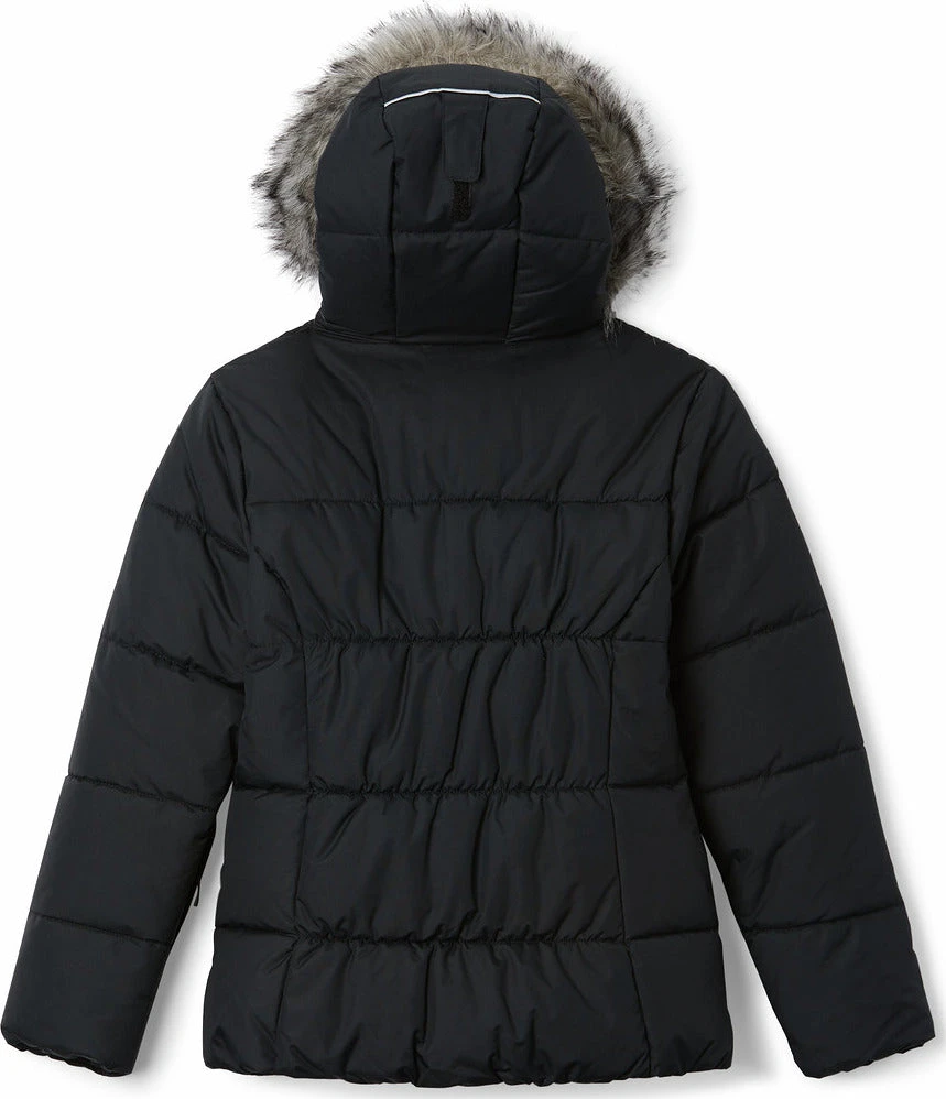 Columbia crafted the girl’s GYROSLOPE Insulated Warm Waterproof Jacket of durable nylon Hydra Cloth and packed with snow-friendly features. The waterproof shell fabric protects 150g of faux down insulation, keeping your child warm and dry. The adjustable storm hood features a soft taffeta lining and is outlined by a removable faux fur trim. Ski-ready, the snap-back powder skirt with silicone grippers stays in place. There are also pockets for a ski pass, media, and googles. 360° reflective detailing helps keep them visible in low light conditions.