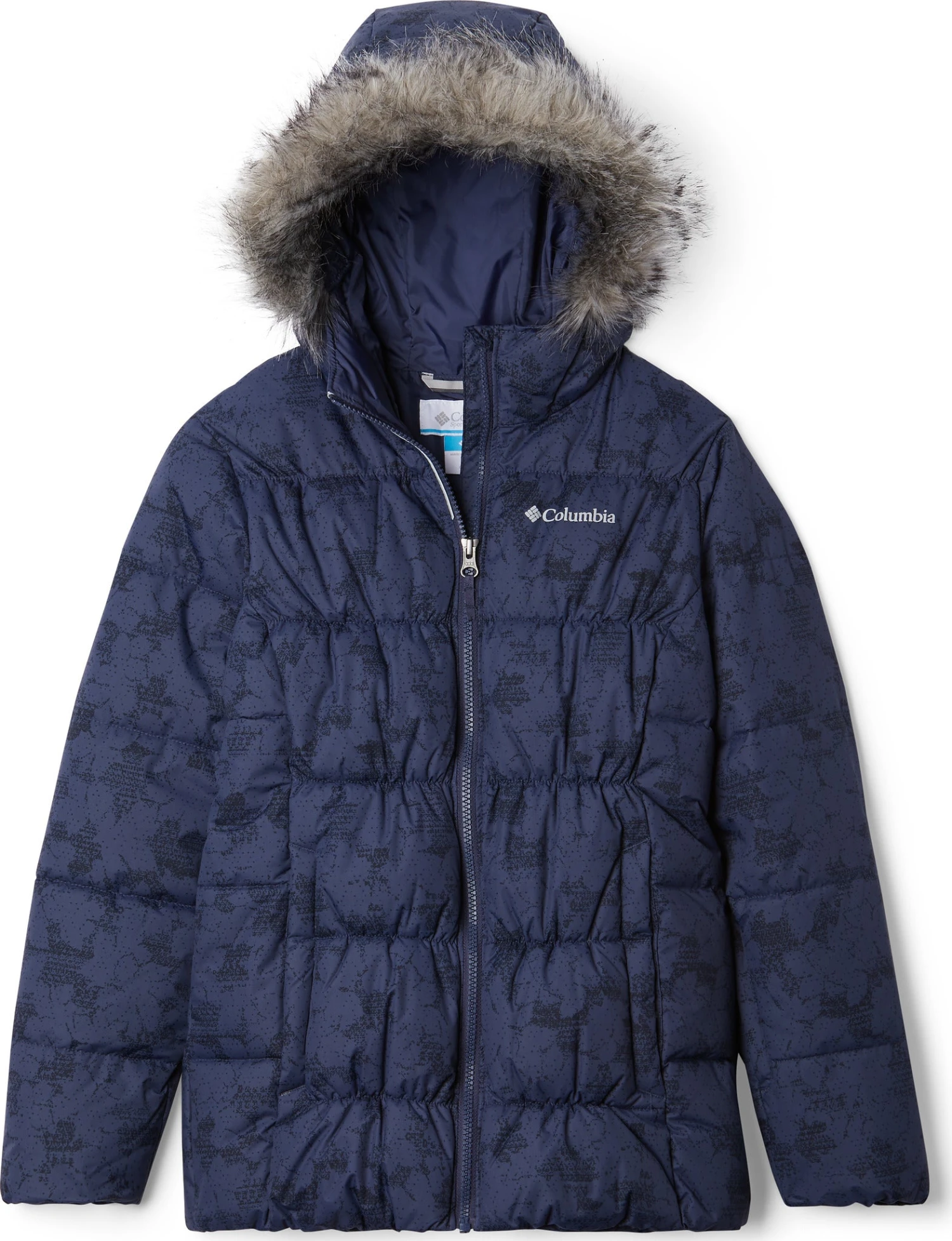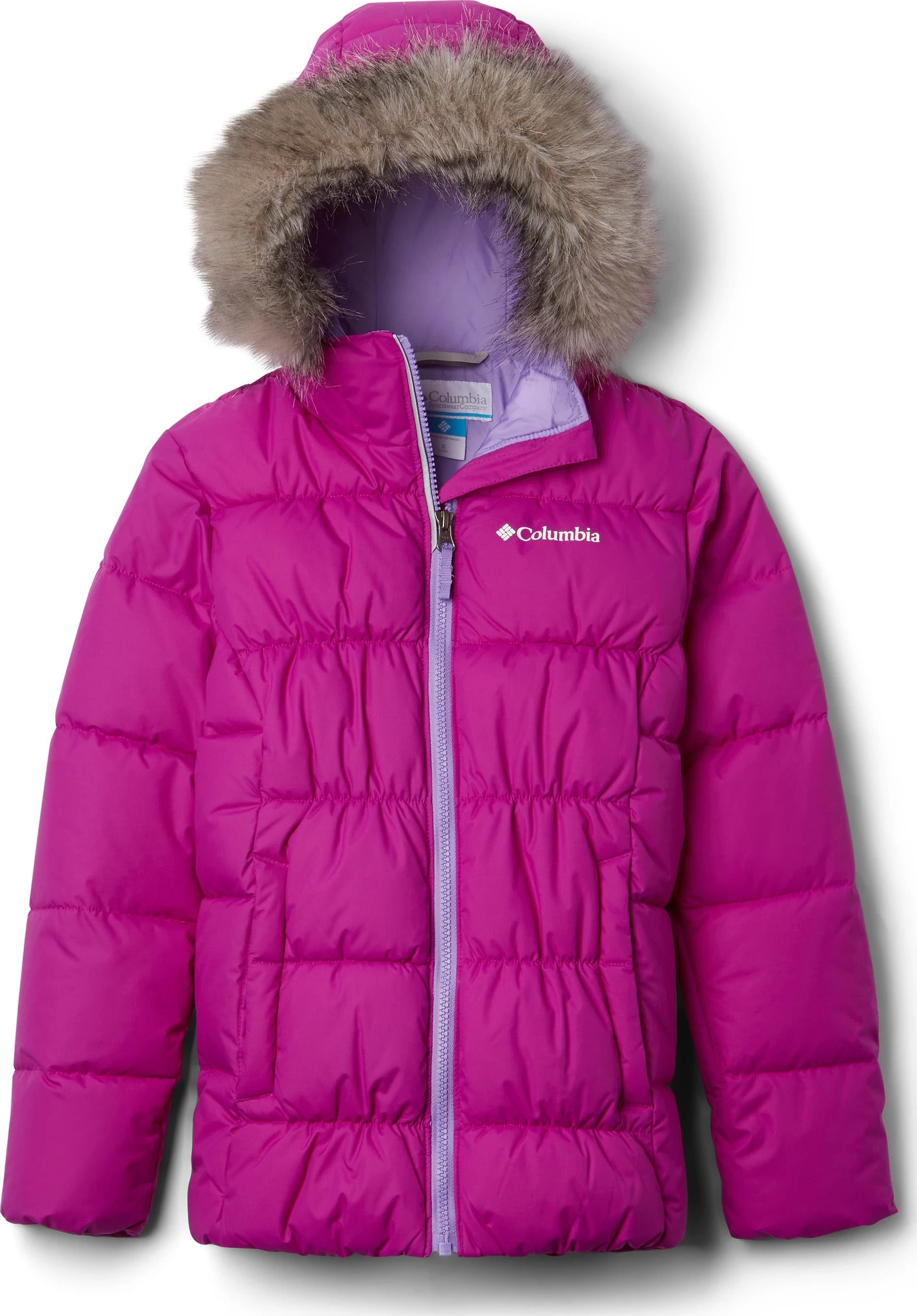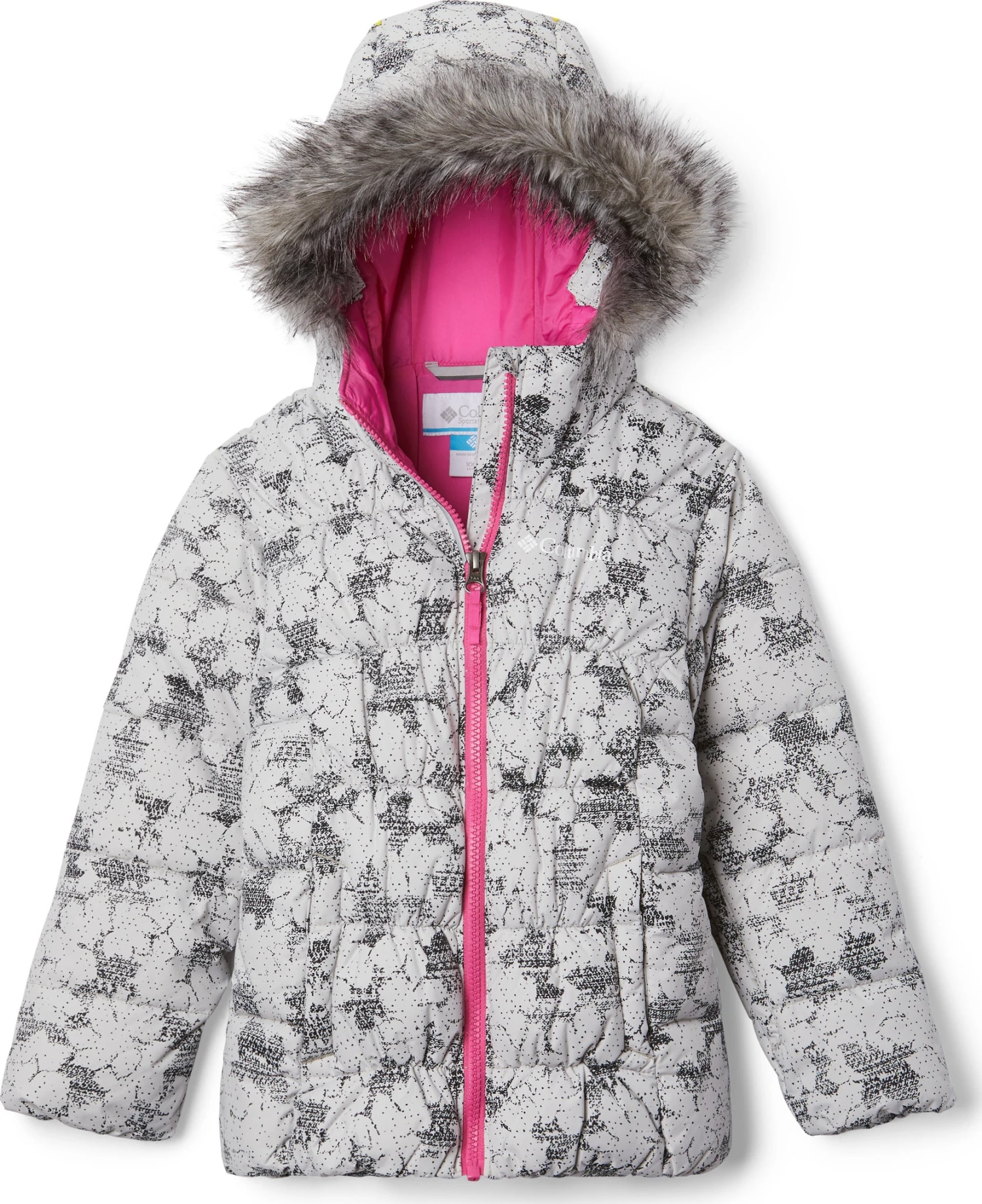 Columbia crafted the girl’s GYROSLOPE Insulated Warm Waterproof Jacket of durable nylon Hydra Cloth and packed with snow-friendly features. The waterproof shell fabric protects 150g of faux down insulation, keeping your child warm and dry. The adjustable storm hood features a soft taffeta lining and is outlined by a removable faux fur trim. Ski-ready, the snap-back powder skirt with silicone grippers stays in place. There are also pockets for a ski pass, media, and googles. 360° reflective detailing helps keep them visible in low light conditions.
