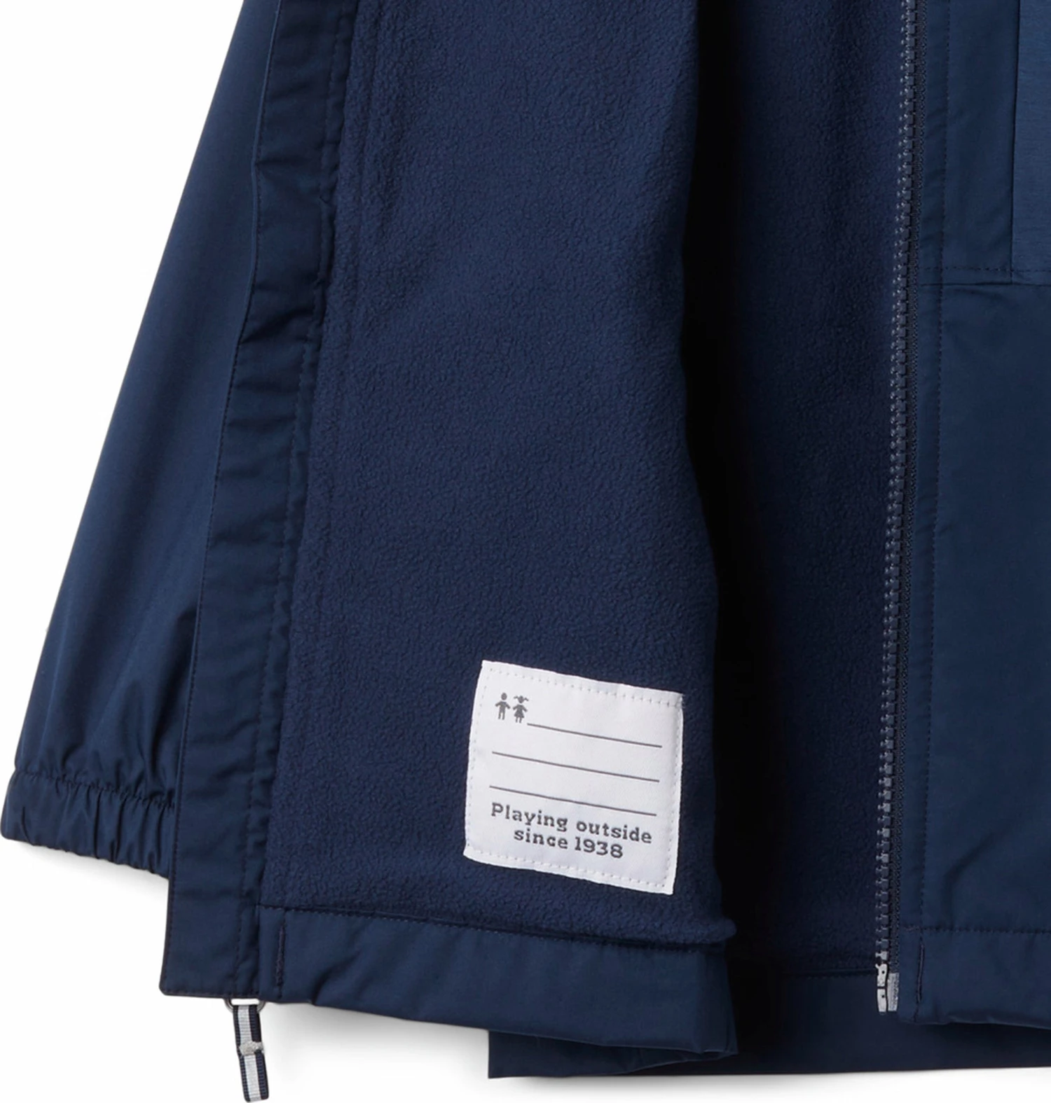 Combining a waterproof exterior with a soft fleece interior, this rain jacket keeps them dry and comfy.