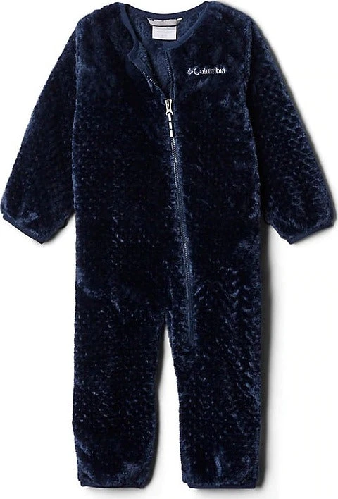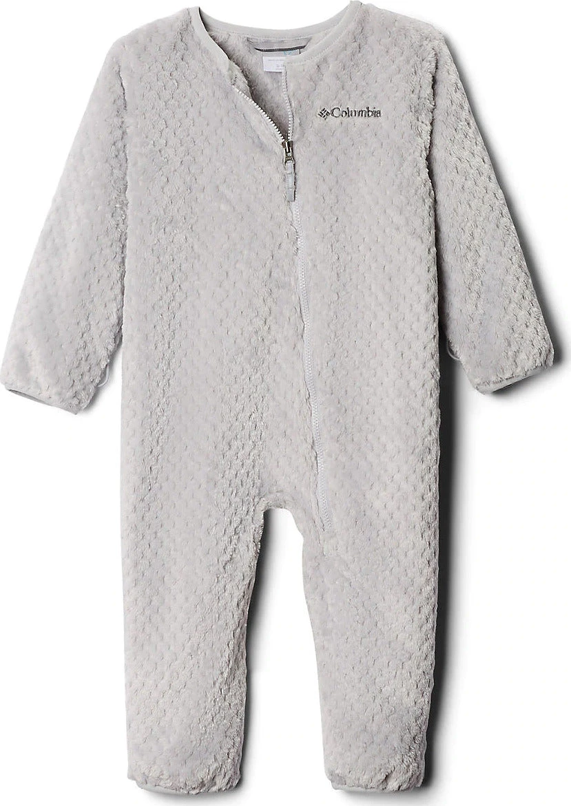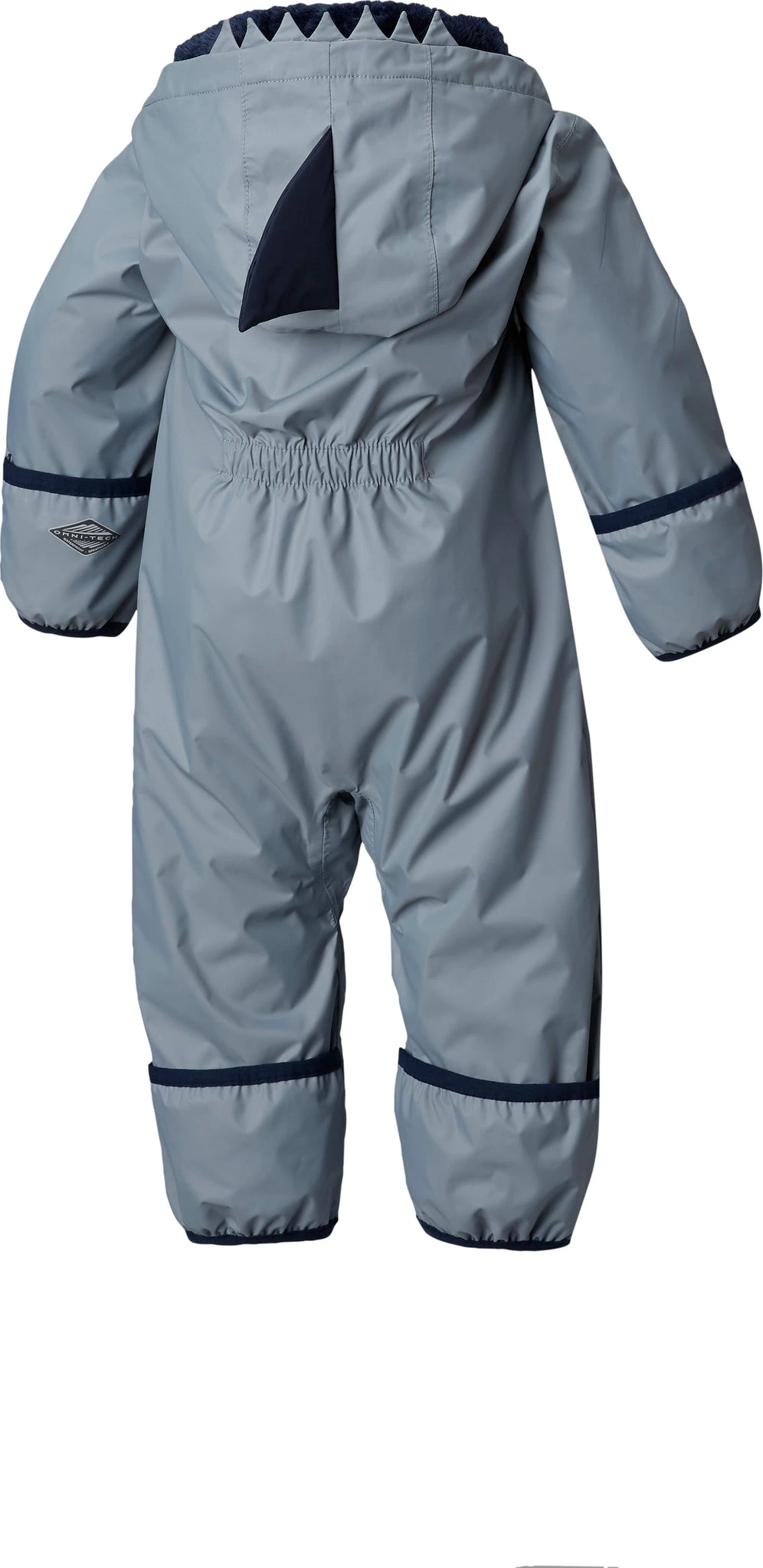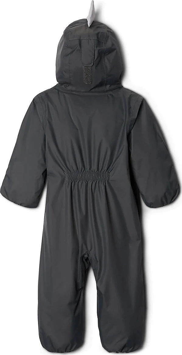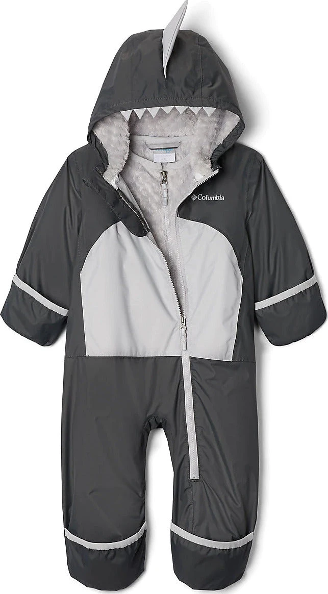Babyâs insulated SHARK TREK Interchange snowsuit by Columbia isnât just warm, dry and comfy, it unzips for a three-in-one jacket combination for whatever the weather throws your way. The shell is waterproof, breathable and seam-sealed. A zip in fleece liner is warm and fuzzy, perfect for babyâs skin. A storm hood adjusts as needed and is lined with soft microfleece. The hands and feet fold over for max warmth and protection.