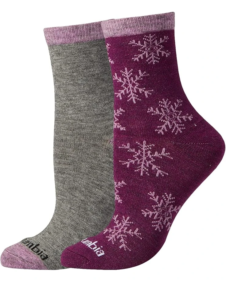 Style your look by donning the comfy and sleek Columbia® Snowfall Light Weight Anklet 2-Pack socks featuring unique designs.SKU: #9819344Pull-on style.This set comes in pairs of two.Lightweight anklet socks.Snowfall design on one sock and solid color on the other sock.Ribbed cuffs.Branding near the toe. Sock 1: 55% polyester, 29% rayon, 15% nylon, 1% spandex;