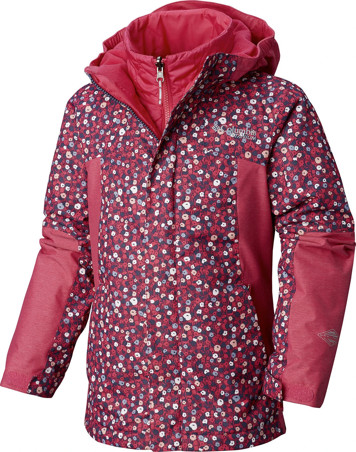 From the bunny hill to the bus stop, the WHIRLIBIRD II Interchange Jacket from Columbia has your little girls covered. Omni-Heat Reflective warming technology helps regulate body temperature with little silver dots that reflect and retain the warmth your body generates. Itâs highly breathable and reduces the need for bulky layers. It also wicks moisture to keep them dry and comfortable on those long days in the winter sun. Omni-Tech provides premium, air-permeable waterproof protection, and the shell combines with a removable, insulated liner for adaptable wear in all seasons. Add that versatility to a collection of snow-sport ready features, and you’ve got a pint-sized winner.